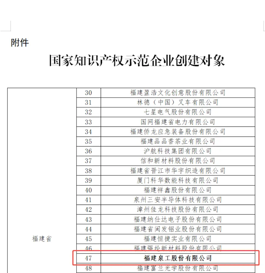 Recentemente, l'Amministrazione nazionale per la proprietà intellettuale (CNIPA) ha pubblicato l'"Annuncio sui risultati della valutazione degli oggetti di creazione dimostrativi di costruzione di un paese forte per la proprietà intellettuale nazionale".Fujian Quangong Machinery Co., Ltd.è stata selezionata con successo come "Oggetto di creazione aziendale dimostrativa nazionale di proprietà intellettuale per il 2025-2027" in base alla sua forza globale nella creazione, utilizzo, protezione e gestione della proprietà intellettuale. Questa selezione di successo significa un autorevole riconoscimento a livello nazionale degli sforzi di Quangong Machinery Co., Ltd. nel promuovere lo sviluppo della proprietà intellettuale di alta qualità e nel servire la strategia nazionale di costruzione di una forte nazione di proprietà intellettuale.